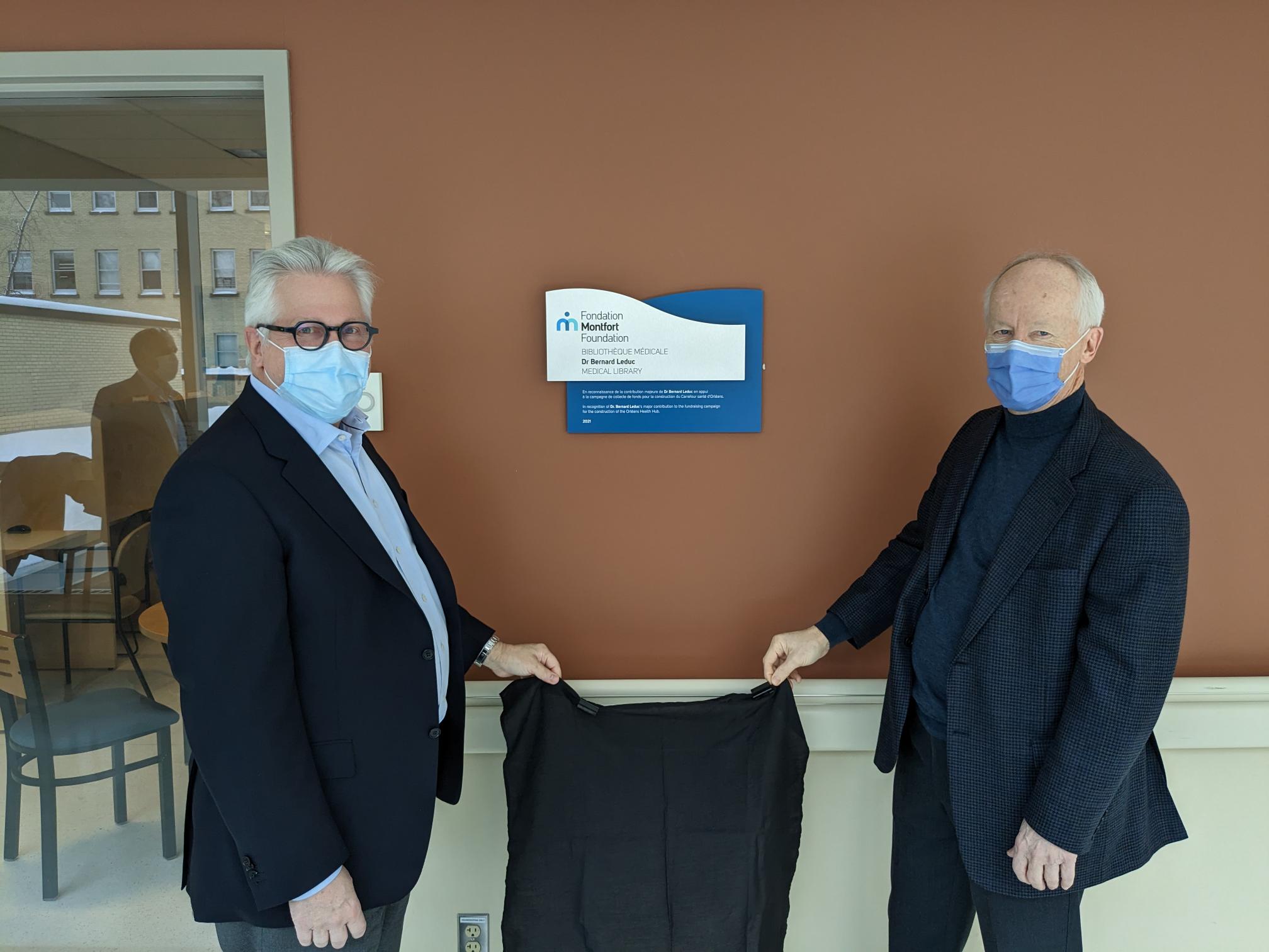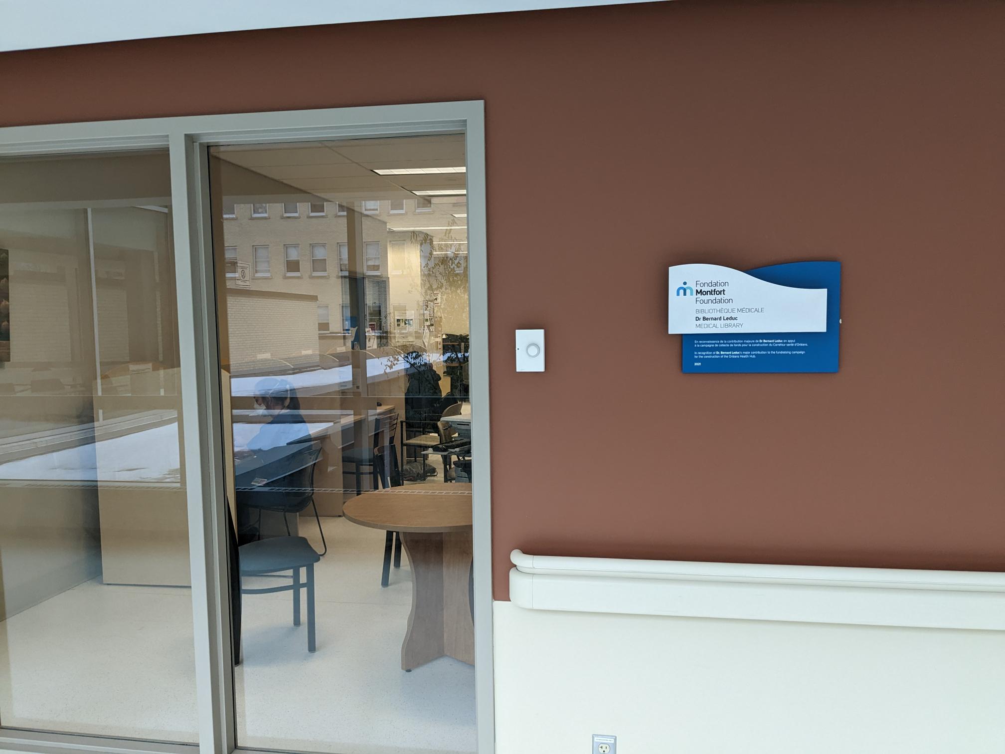 En guise de reconnaissance pour son don envers le Carrefour, la Fondation Montfort a apposé une plaque de reconnaissance aux abords de la bibliothèque médicale à l’Hôpital Montfort. Bravo, Dr Leduc, pour cet hommage pleinement mérité.