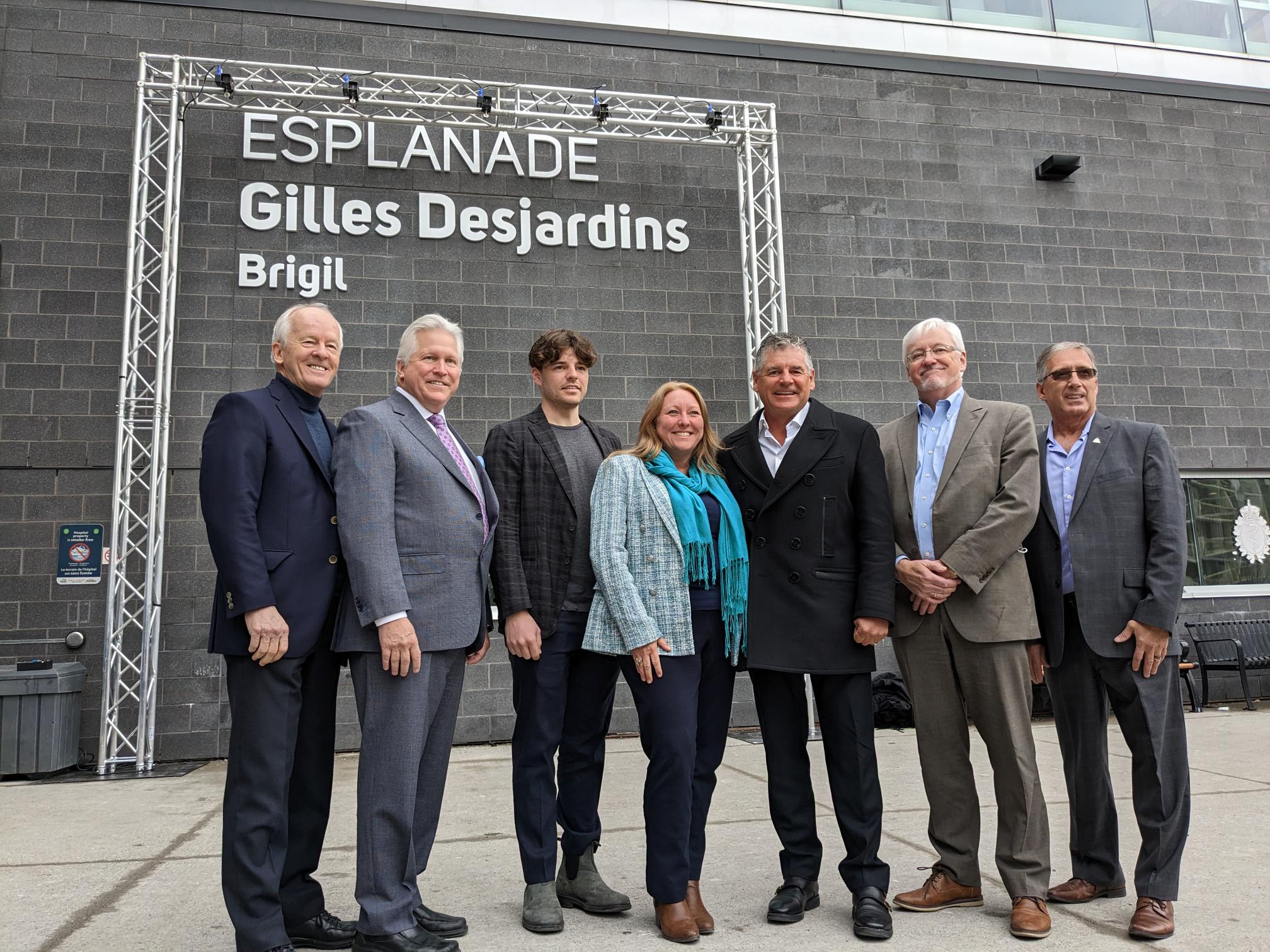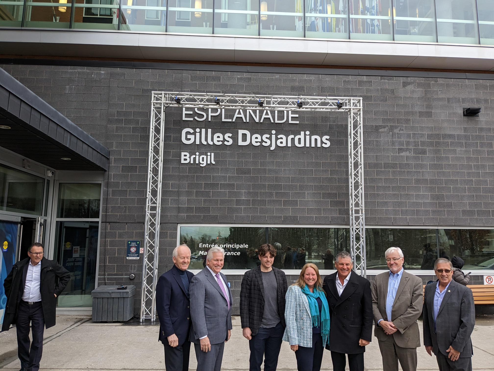 C’est sous le regard d’invités distingués, de représentants des médias et de membres de la grande famille Montfort que l’Esplanade Gilles Desjardins, Brigil, a officiellement été dévoilée, le 3 avril dernier, de même qu’une plaque de reconnaissance. L’homme d’affaires se mérite ces honneurs à la suite de l’octroi de son don exceptionnel d’un million de dollars, offert dans le cadre de la campagne de financement majeure menée par la Fondation Montfort, en juin dernier.