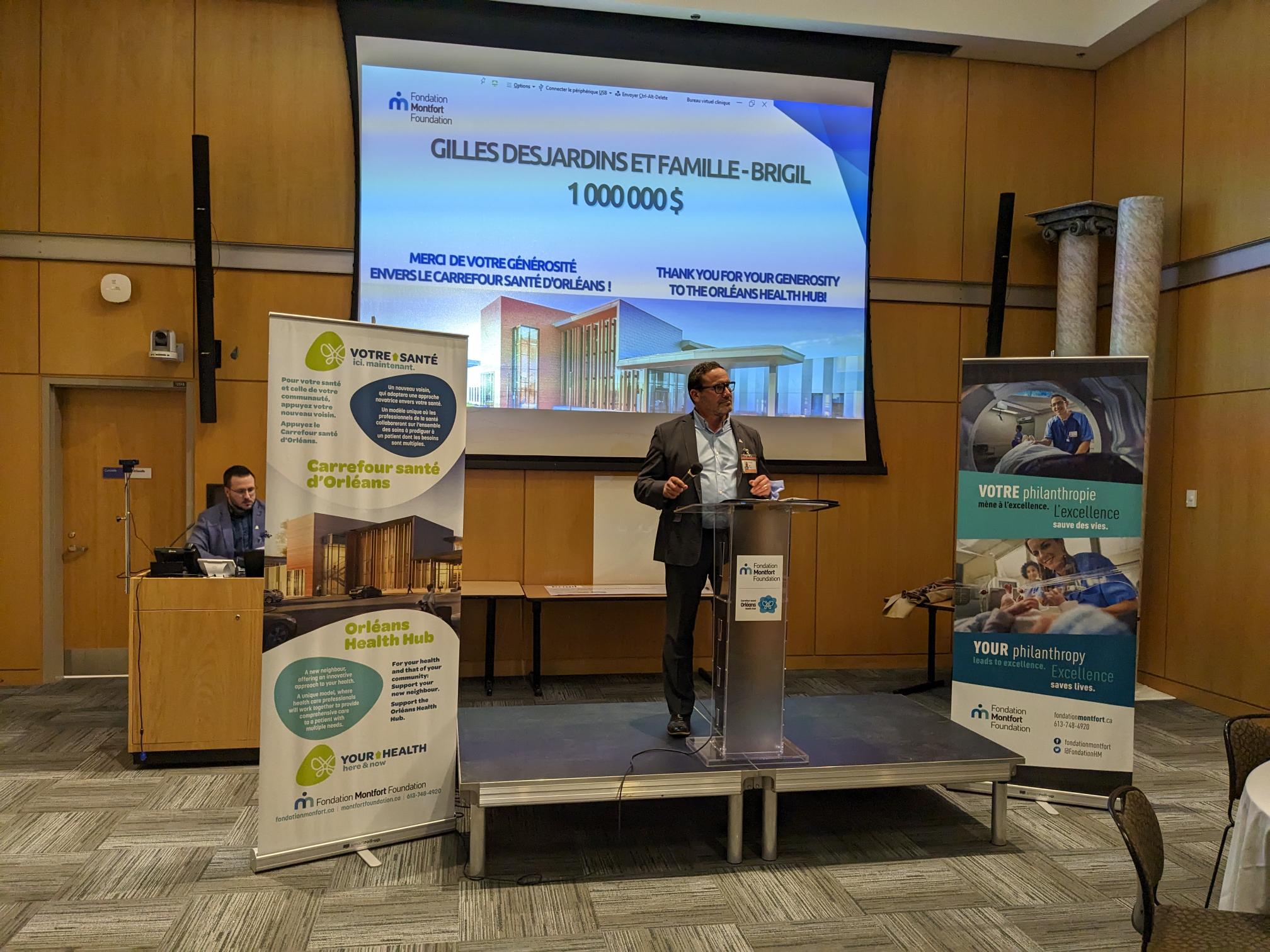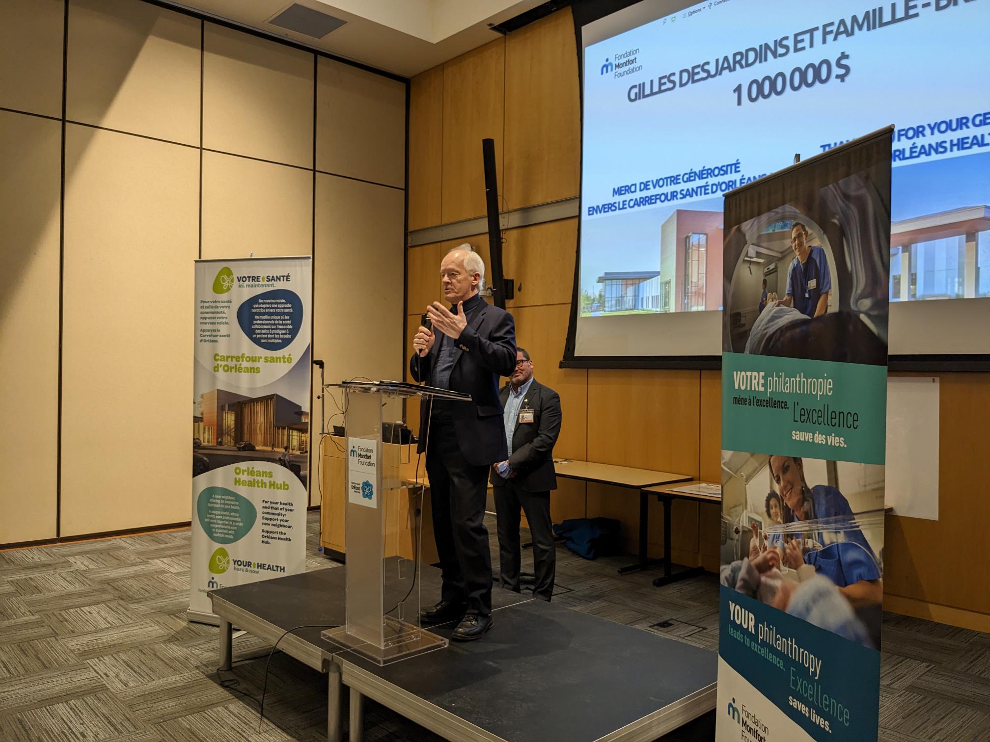 « Les accomplissements philanthropiques de Gilles Desjardins, au cours des dernières années, ont eu des impacts directs auprès de la population à différents égards. Sa très grande générosité est exemplaire et la Fondation Montfort est privilégiée de l’avoir à ses côtés. Il est donc essentiel pour nous de reconnaître publiquement sa générosité pour son don exceptionnel envers le Carrefour santé Aline-Chrétien à Orléans, » souligne Marc Villeneuve, PDG de la Fondation Montfort.