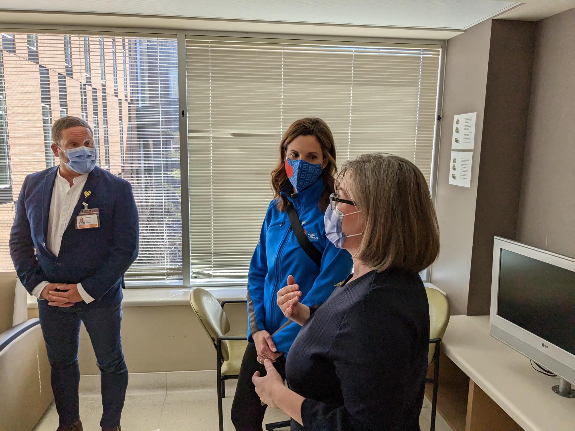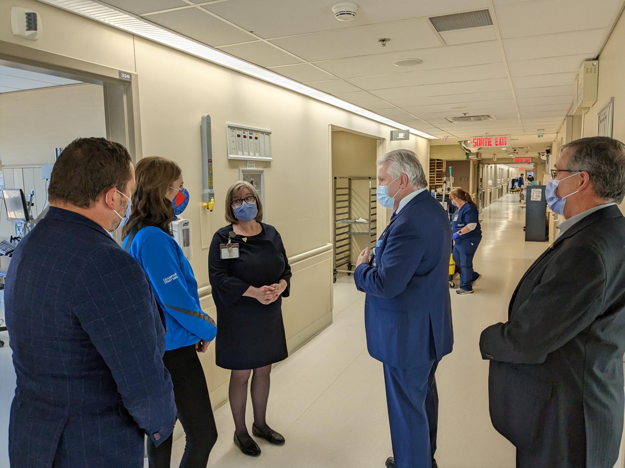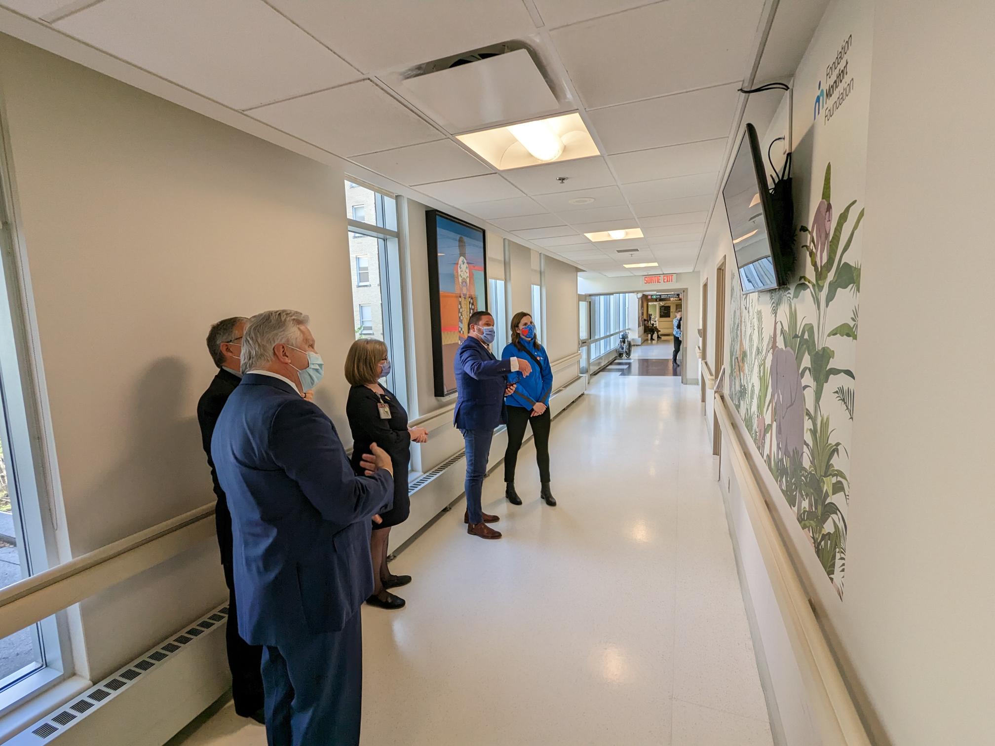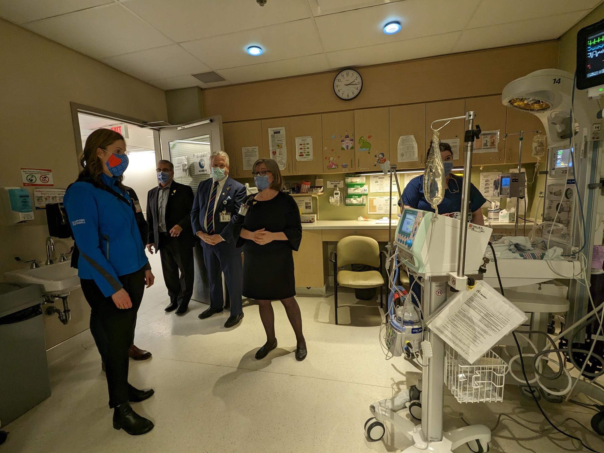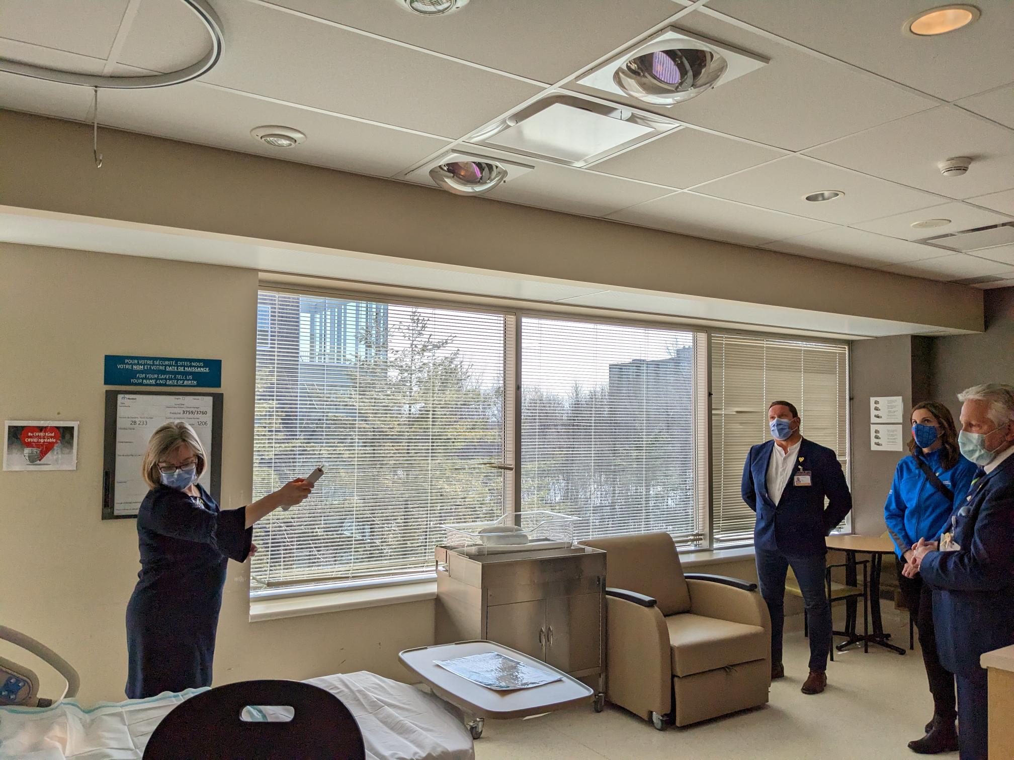 Le 4 avril dernier, Lisa Weagle, mentore du Programme de bourses Esprit de Sandra à la Fondation Sandra Schmirler, a rencontré France Morin, directrice du Centre familial de naissance à Montfort, de Dr Bernard Leduc, PDG de l’Hôpital Montfort, Robert Rhéaume, président du conseil d’administration de la Fondation Montfort, et Marc Villeneuve, PDG de celle-ci, pour la remise officielle du don de 35 000 $ et pour visiter les lieux. Mme Weagle, était heureuse de constater l’utilisation du lit chauffant pour nouveau-nés à la pouponnière du CFN.