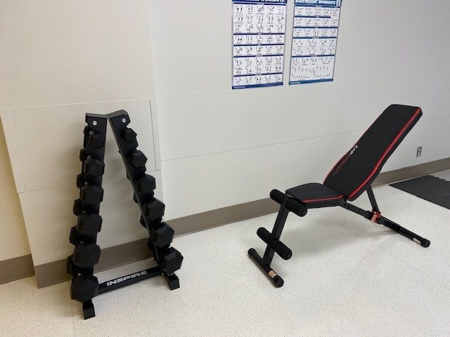 Merci à la Fondation Montfort pour le don de la murale qui vient égayer l’espace ainsi qu’à Dre Suleena Duhaime pour le don de poids et haltères.